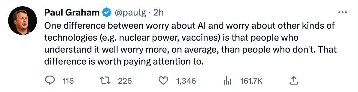 The key issue is not “human-competitive” intelligence (as the open letter puts it); it’s what happens after AI gets to smarter-than-human intelligence. Key thresholds there may not be obvious, we definitely can’t calculate in advance what happens when, and it currently seems imaginable that a research lab would cross critical lines without noticing.